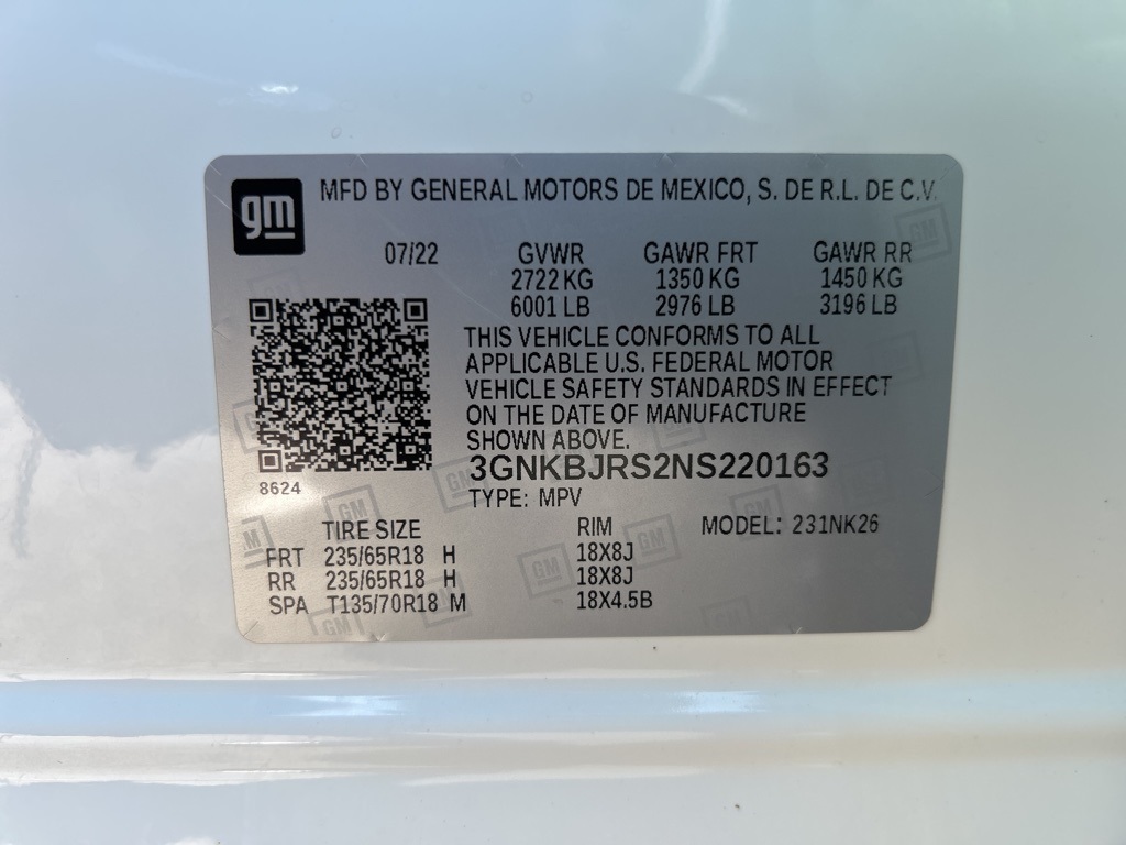 | GZ253280A | 3GNKBJRS2NS220163 | Summit White | Jet Black |