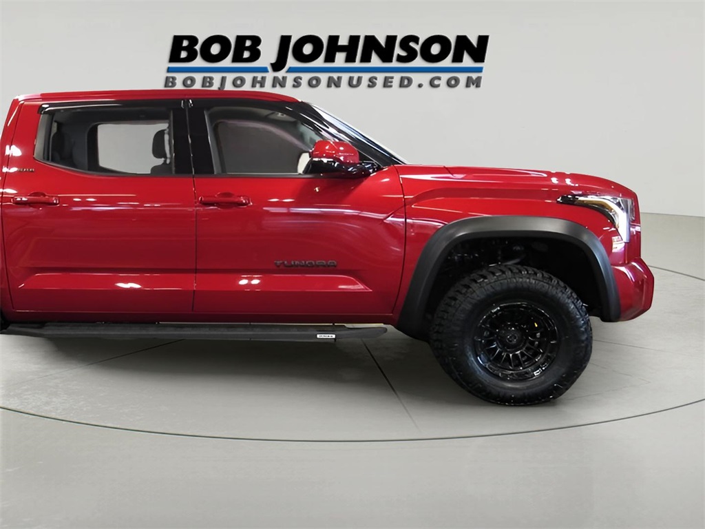 Toyota Tundra SR5 , stock number: U5997 located at Bob Johnson Certified Collection in Rochester, New York. Some of the stand out features and benefits of this nice pre-owned Toyota Tundra include: 35" Tires, 18" Black Rhino Rims, 3.5" Lift Kit w/ premium Forged Aluminum Upper Control Arm, Upgrade M1 Struts & Shocks, Tri-Fold Tonneau Cover, Off-Road Platform Running Boards, 9 Speakers, Fabric Seat Trim (FB), Towing Package.Bob Johnson Certified Collection is a stand-alone, pre-owned facility that rivals many franchise dealers' facilities. The selection and reconditioning process is unmatched and has set a new standard for pre-owned dealers entirely. Only the best-of-the-best qualify for our retail lot. While we see dozens of vehicles each day, only a few "make the team". This pre-owned 2023 Toyota Tundra is one of those few. Please verify the accuracy of information in regards to the actual vehicle equipment, miles, vehicle specifications, location, and vehicle price with dealer. For more information on this Tundra, or to make an appointment call us at 585-339-2731 .Supersonic Red2023 Toyota Tundra SR5 TRD Sport CustomSR53.4L V64D CrewMax4WD10-Speed AutomaticTundraToyota 17/23 City/Highway MPG