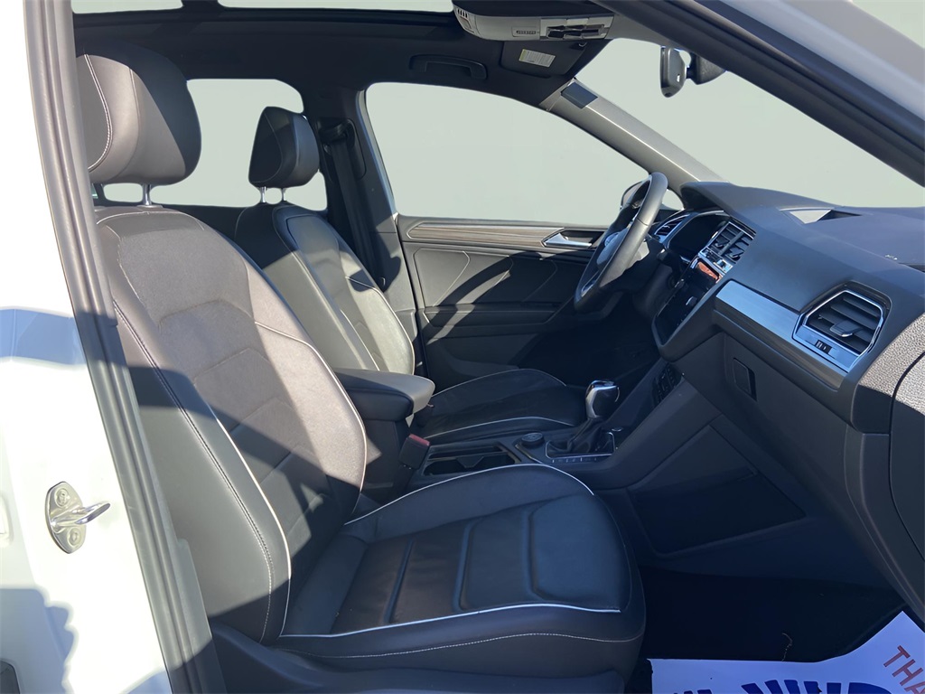 Volkswagen Certified Pre-Owned Details: * Vehicle History * Roadside Assistance * Warranty Deductible: $50 * 100+ Point Inspection * Model Year 2020 and Newer Vehicles: 2-Year or 24,000-Mile (whichever occurs first) Comprehensive Limited Warranty. Model Year 2019 Vehicles: 1-Year or 12,000-Mile (whichever comes first) Comprehensive Limited Warranty. Electric Vehicles Model Year 2019 & Newer: 3-Year or 36,000-Mile (whichever comes first) Comprehensive Limited Warranty. 2 Years of 24-Hour Roadside Assistance, Three Months of SiriusXM Platinum Plan Trial Subscription.*Bluetooth*, Tiguan 2.0T SEL R-Line, 4D Sport Utility, 2.0L TSI DOHC, 8-Speed Automatic with Tiptronic, AWD, White Pearl, Black Leather, 4-Wheel Disc Brakes, 4-Wheel Independent Suspension, Air Conditioning, AM/FM radio: SiriusXM with 360L, Bumperdillo Rear Bumper Protection Plate in Chrome, Dual front impact airbags, Dual front side impact airbags, Emergency communication system: Car-Net, Fully automatic headlights, Heated steering wheel, Heated/Ventilated Front Comfort Sport Seats, Leather Shift Knob, Leather steering wheel, Navigation system: VW Car-Net Guide & Inform, Power Liftgate, Power moonroof, Power passenger seat, Rain sensing wipers, Remote keyless entry, Speed-sensing steering, Steering wheel mounted audio controls, Wheels: 20" Machined Black Alloy. 3157888989. Certified. 2022 Volkswagen Tiguan 2.0T SEL R-LineWe value your time and experience. Contact us with any questions and one of our experienced and dedicated sales reps will get back to you promtley!White Pearl AWD 8-Speed Automatic with Tiptronic 2.0L TSI DOHC