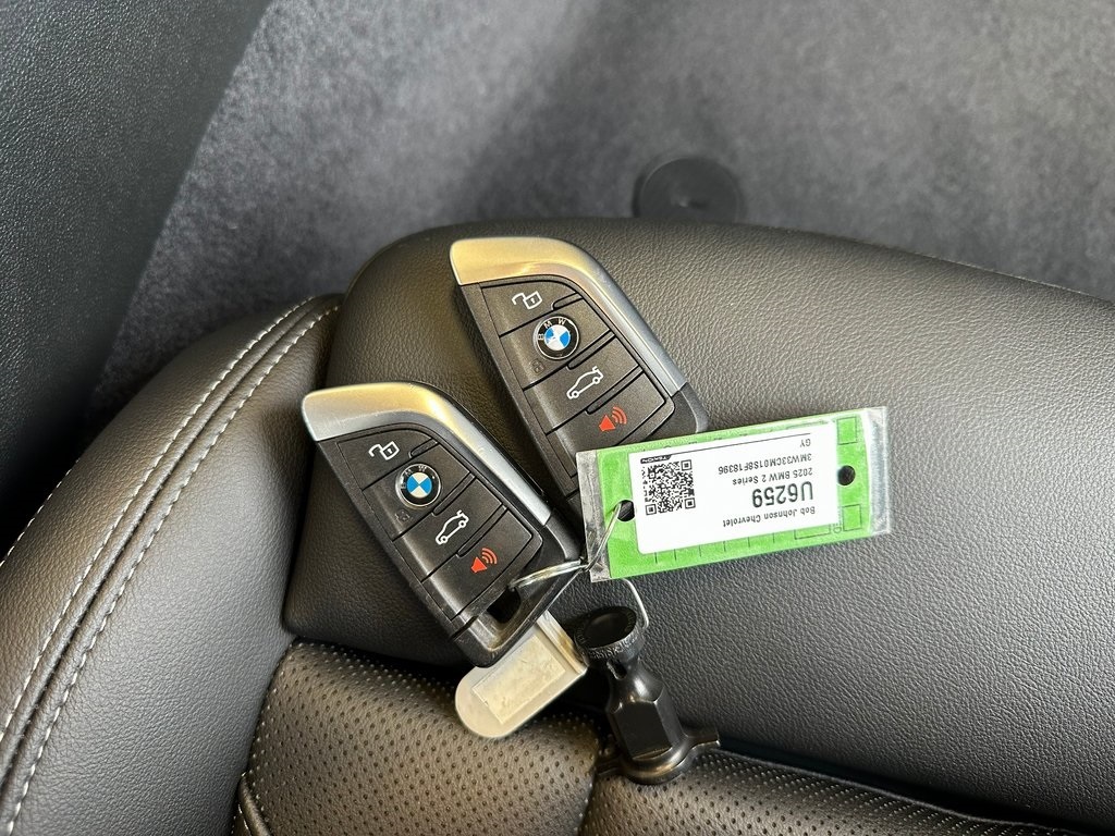 Certified.BMW 2 Series 230i xDrive , stock number: U6259 located at Bob Johnson Certified Collection in Rochester, New York. Some of the stand out features and benefits of this nice pre-owned BMW 2 Series include: 10 Speakers, Adaptive Full LED Lights, Automatic High Beams, Comfort Access Keyless Entry, Connected Package Pro, Heated Front Seats, Heated Steering Wheel, Live Cockpit Pro w/Head-Up Display, Moonroof, Premium Package, Universal Garage-Door Opener.Certification Program Details: CarBravo Certified vehicles come with a standard limited warranty. 6-month/6,000-mile limited bumper-to-bumper warranty, with no deductible. Comprehensive 126 multi-point inspection by expert Certified Service technicians. A 10-day/500-mile vehicle exchange programBob Johnson Certified Collection is a stand-alone, pre-owned facility that rivals many franchise dealers' facilities. The selection and reconditioning process is unmatched and has set a new standard for pre-owned dealers entirely. Only the best-of-the-best qualify for our retail lot. While we see dozens of vehicles each day, only a few "make the team". This pre-owned 2025 BMW 2 Series is one of those few. Please verify the accuracy of information in regards to the actual vehicle equipment, miles, vehicle specifications, location, and vehicle price with dealer. For more information on this 2 Series, or to make an appointment call us at 585-339-2731 .Priced below KBB Fair Purchase Price!Skyscraper Gray Metallic2025 BMW 2 Series 230i xDrive CarBravo Certified230i xDrive2.0L I4 16V TwinPower Turbo2D CoupeAWD8-Speed Automatic Sport2 Series25/33 City/Highway MPG BMW 25/33 City/Highway MPG