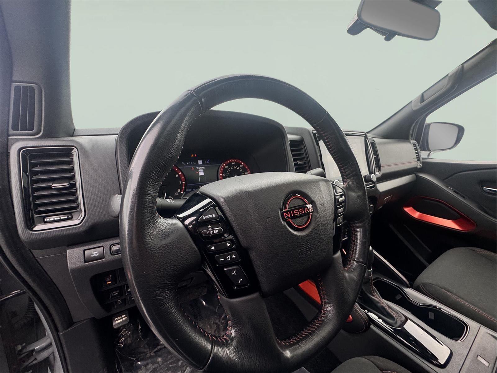 This 2022 Nissan Frontier PRO-4X, has a Boulder Grey Pearl exterior and an Charcoal w/Lava Red Stitch interior color. 30,963 miles. Stock Number PS1130. You can connect with us by calling (585) 359-2200.