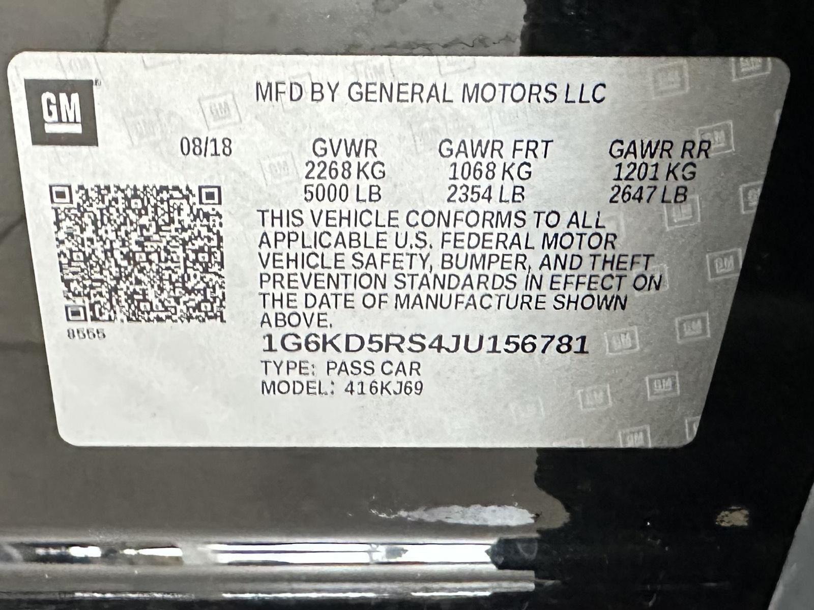- VIN: 1G6KD5RS4JU156781