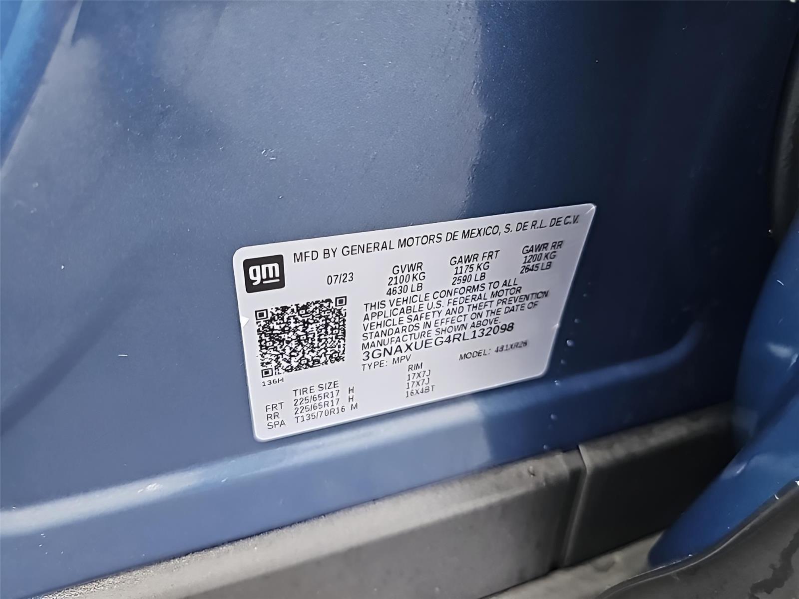 | PA4062 | 3GNAXUEG4RL132098 | Lakeshore Blue Metallic | Jet Black |