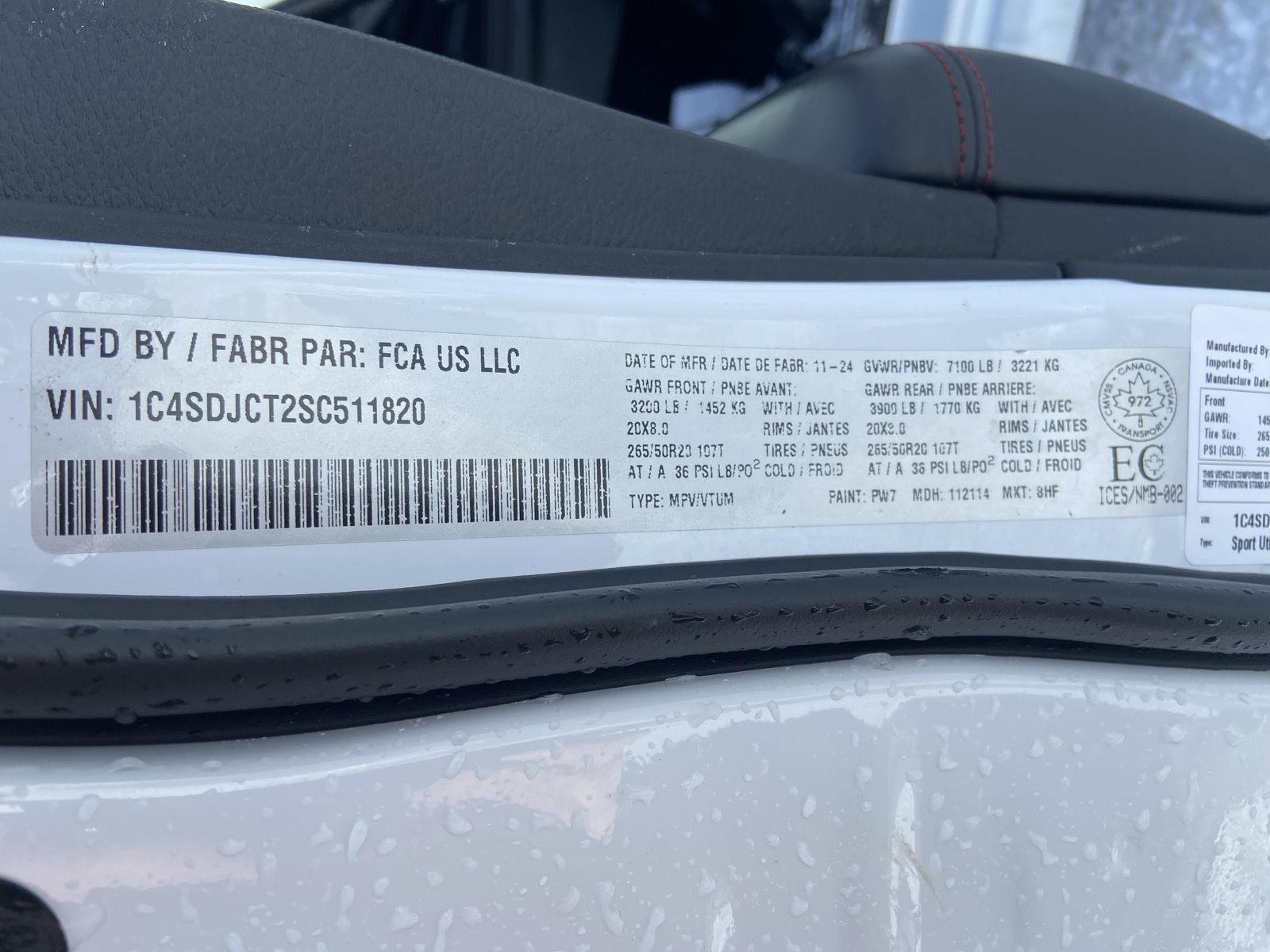 | VZ21820 | 1C4SDJCT2SC511820 | White Knuckle | Black |