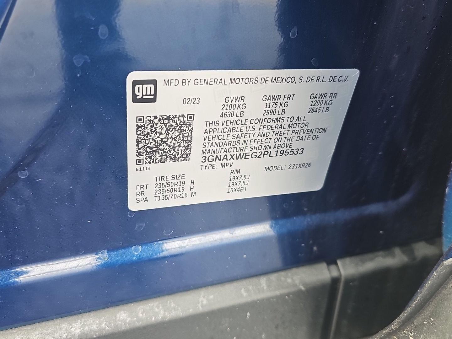 | TA262866A | 3GNAXWEG2PL195533 | Blue Glow Metallic | Jet Black |